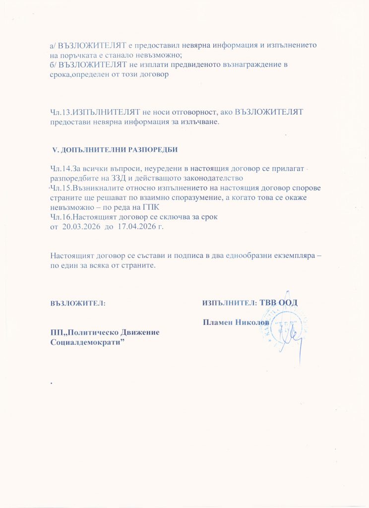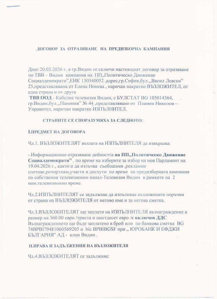 Парламентарни избори 2026 Договор с ПП Прогресивна България за предизборни излъчвания в ефира на ТВВ. Екип ТВВ 23/03/2026